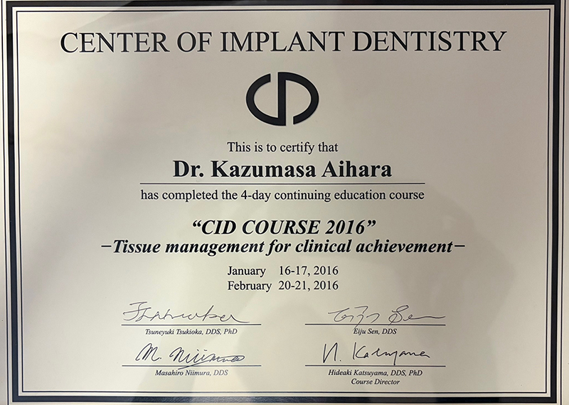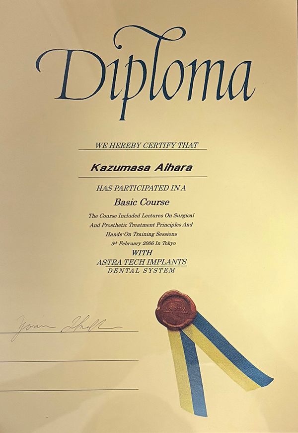 | 2006年 | アストラテック・インプラント ベーシック・コース(池田頼宣先生) |
