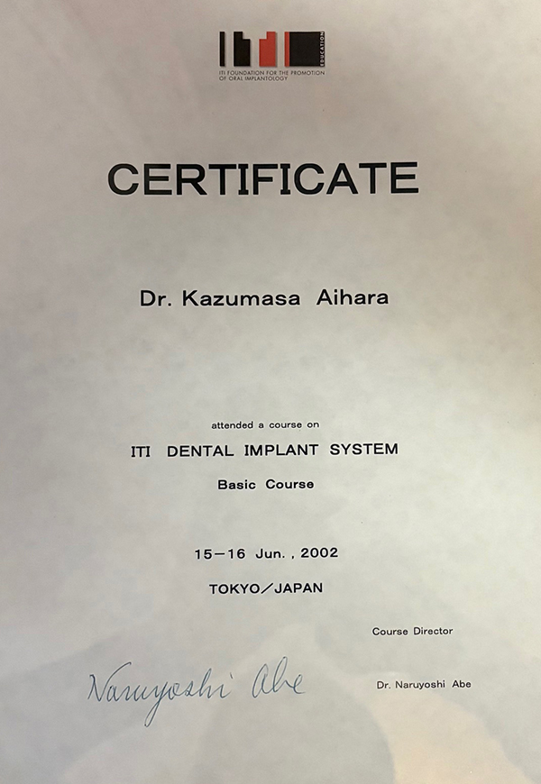 | 2002年 | ITIインプラント ベーシック・コース(阿部成善先生) |