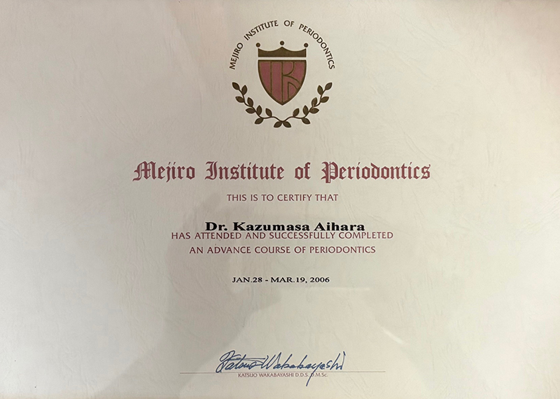 | 2006年 | 目白歯周病学研究会 アドバンス・コース(若林勝夫先生) |