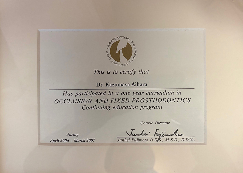 | 2006~2007年 | 藤本研究会 補綴・咬合コースPart I (藤本順平先生)